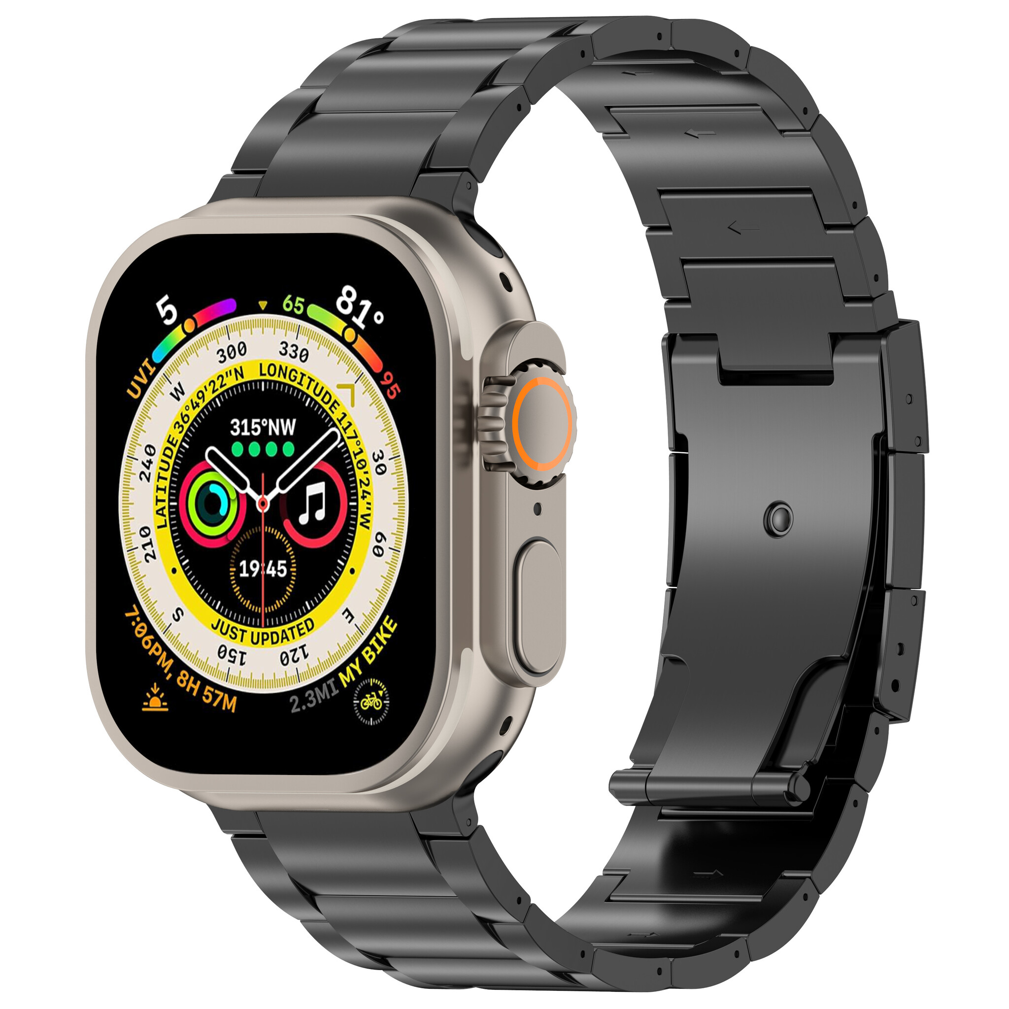 Apple Watch band T2 black titanium shiny 46mm