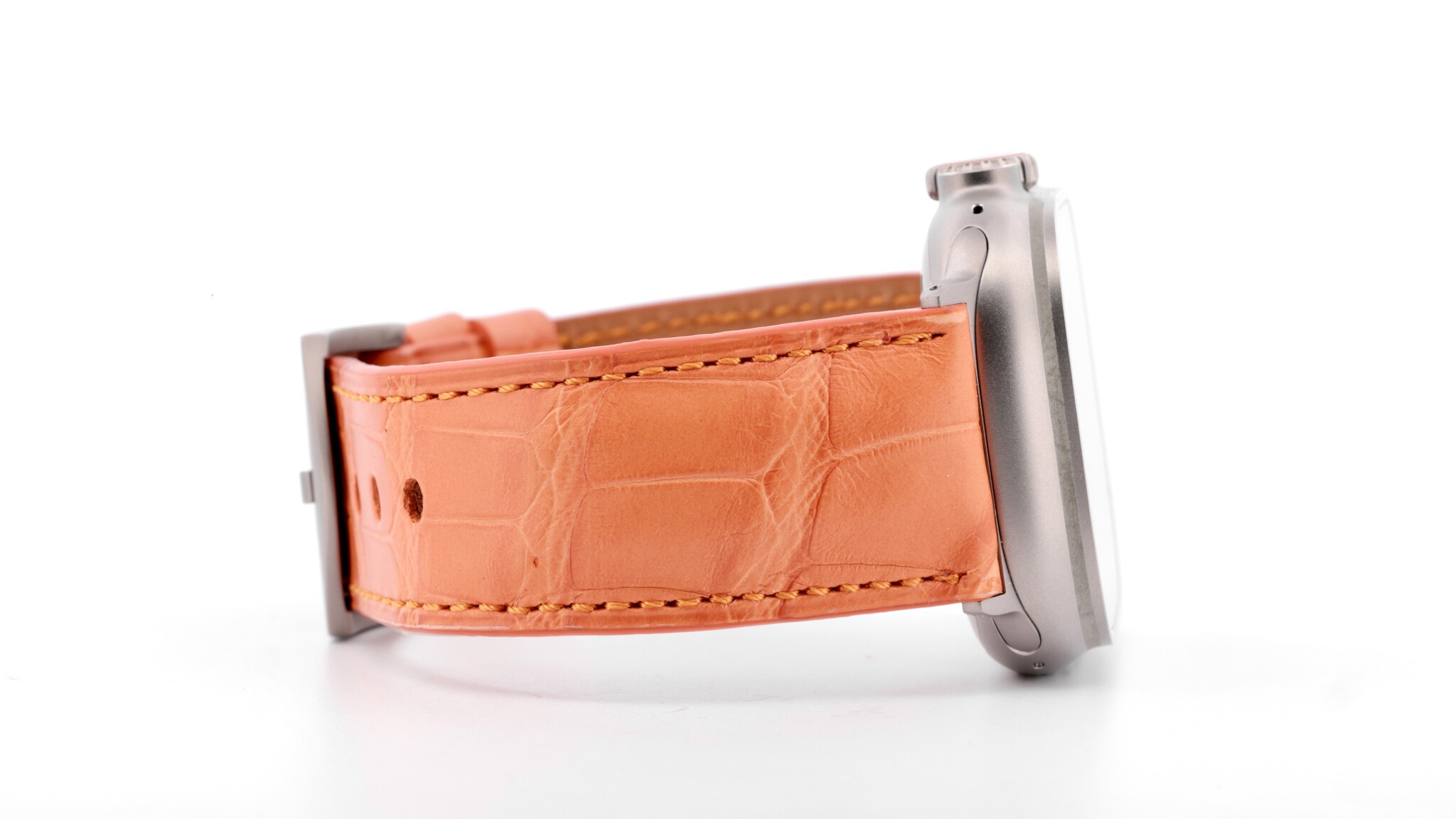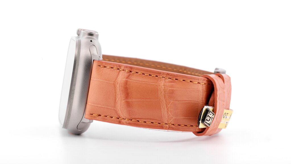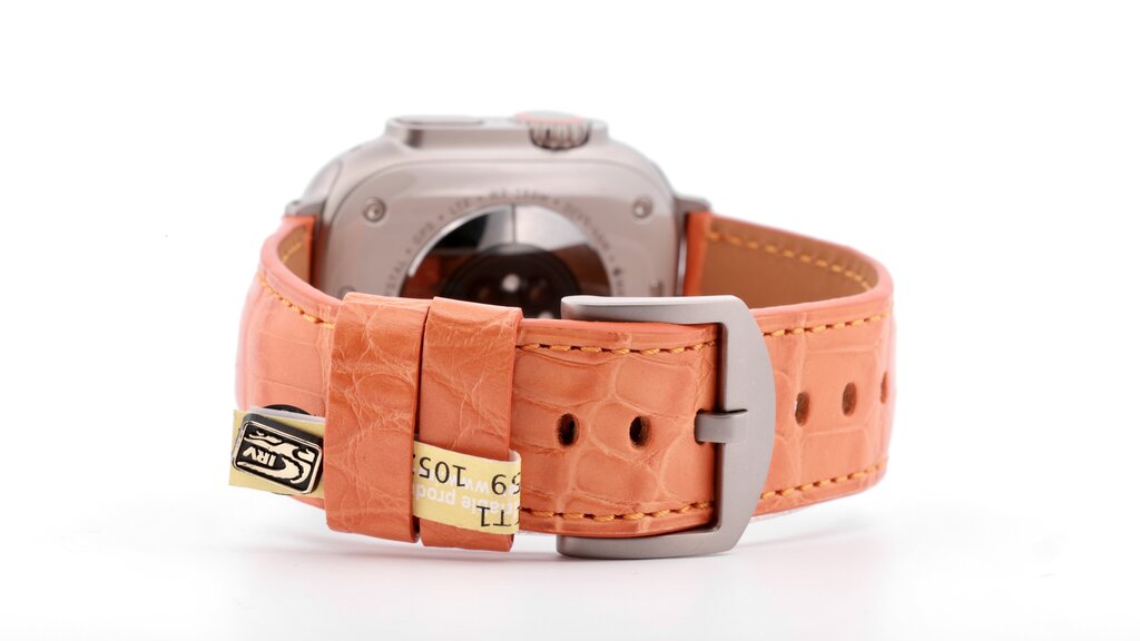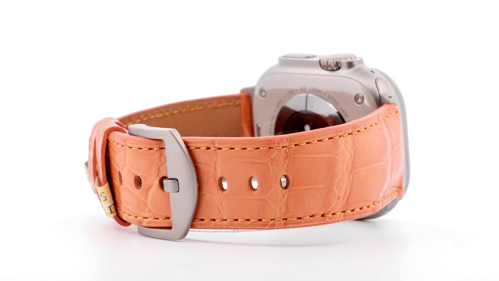Limited Edition!! Apple Watch Ultra titanium band, echte Louisiana krokoleer in oranje 24mm, grade-2 titanium connector & gesp. Binnenkort ook voor de Ultra 2 black beschikbaar met titanium black connector & gesp. (Wordt zonder Apple Watch geleverd)