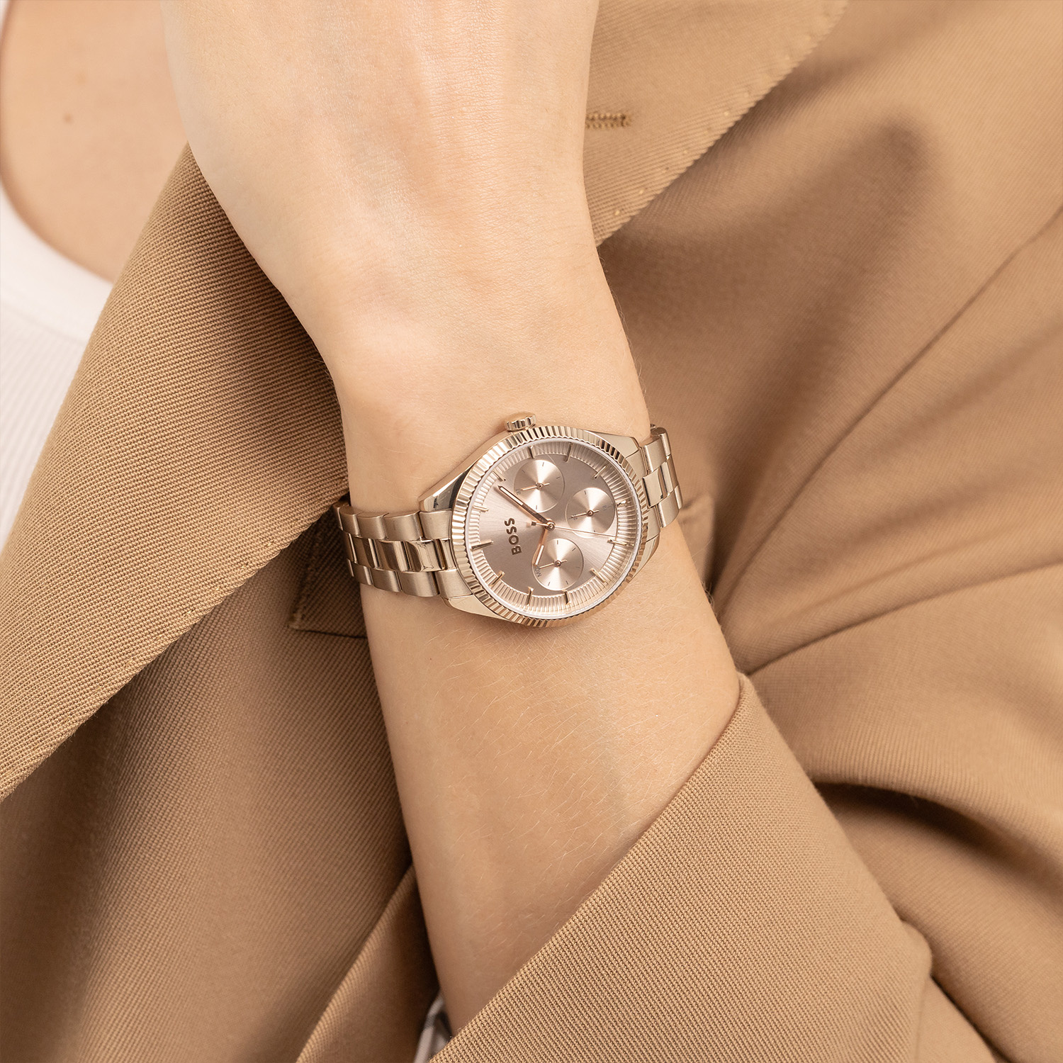 Boss Sage Sport beige goldplated horloge HB1502801