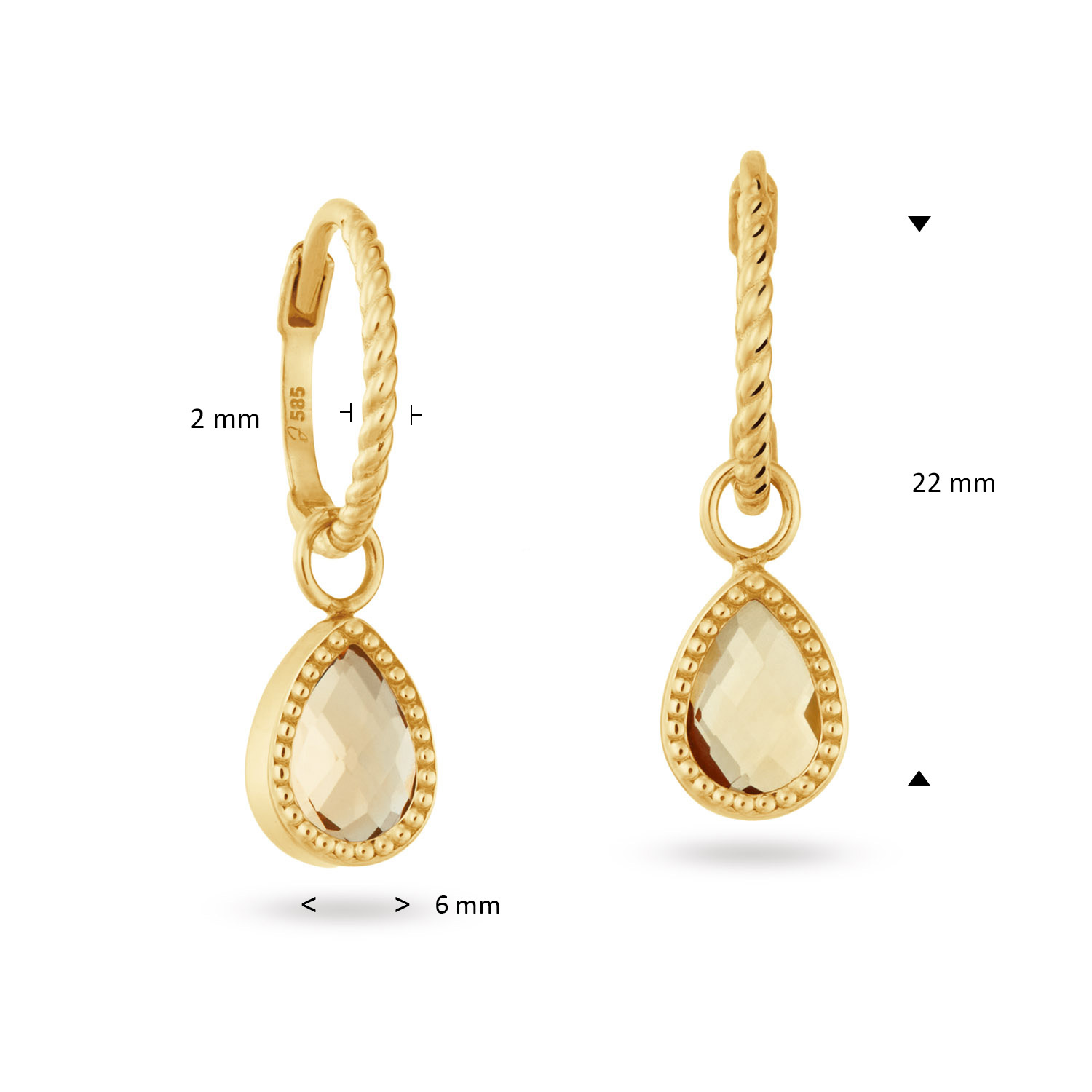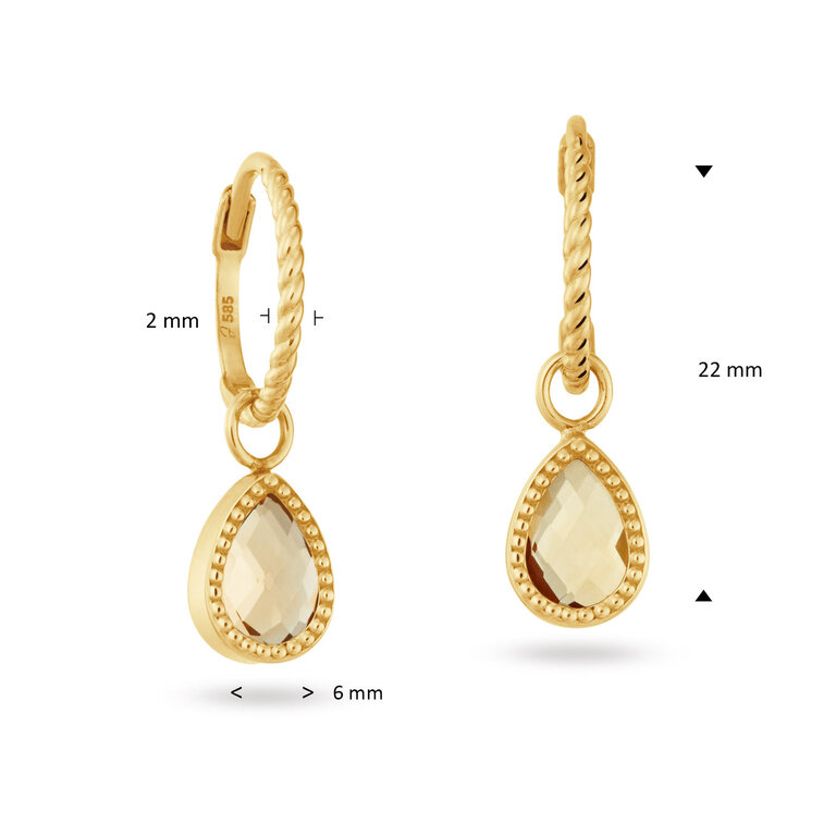 Jackie 14k geelgoud Amstel Citrine Hoops 22mm JKE25.560